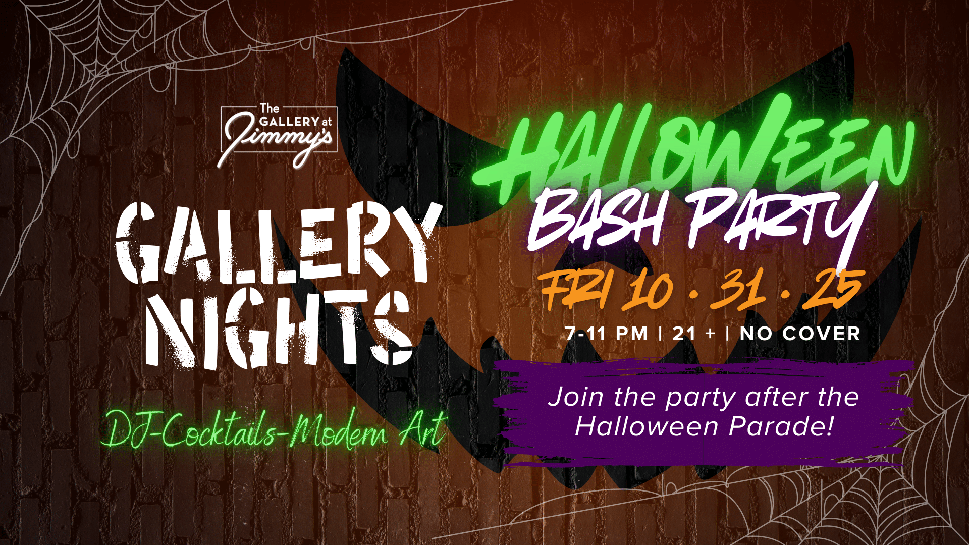 Gallery Nights: Halloween Bash Party Friday, October 31 | 7–11 PM | 21+ | No Cover Keep the Halloween spirit alive after the Portsmouth Halloween Parade! Step inside The Gallery at Jimmy’s for a late-night celebration where art meets eerie. Creative cocktails, light bites, and a pulse of high-energy beats set the scene for costumes and dancing. Come dressed to impress, fright, or delight and you might just win our costume contest... Staff favorite will take home a $100 Jimmy’s Jazz & Blues Club gift card! Sip, mingle, and explore contemporary art while you mix with fellow ghouls and night-owls. Whether you’re fresh from the parade route or just looking for a great party, the Halloween Bash is your destination for unforgettable tricks and treats. Full bar available | Light bites served | Art on view Bring your best costume and celebrate Halloween in true Gallery Nights fashion. |