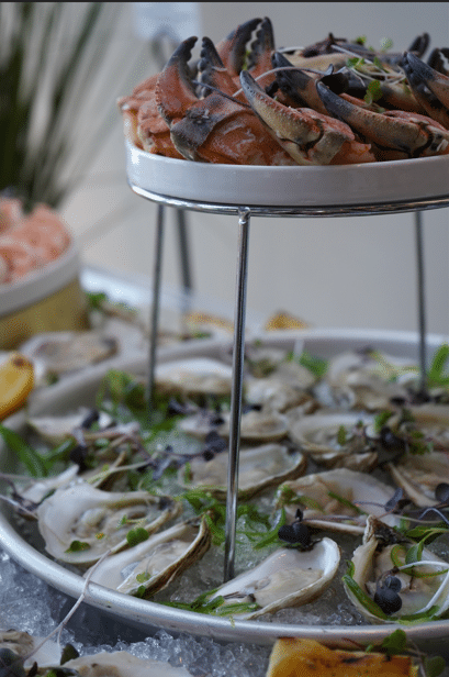 Shucked Oysters, with cucumber pineapple mignonette, hot sauce, grilled lemons