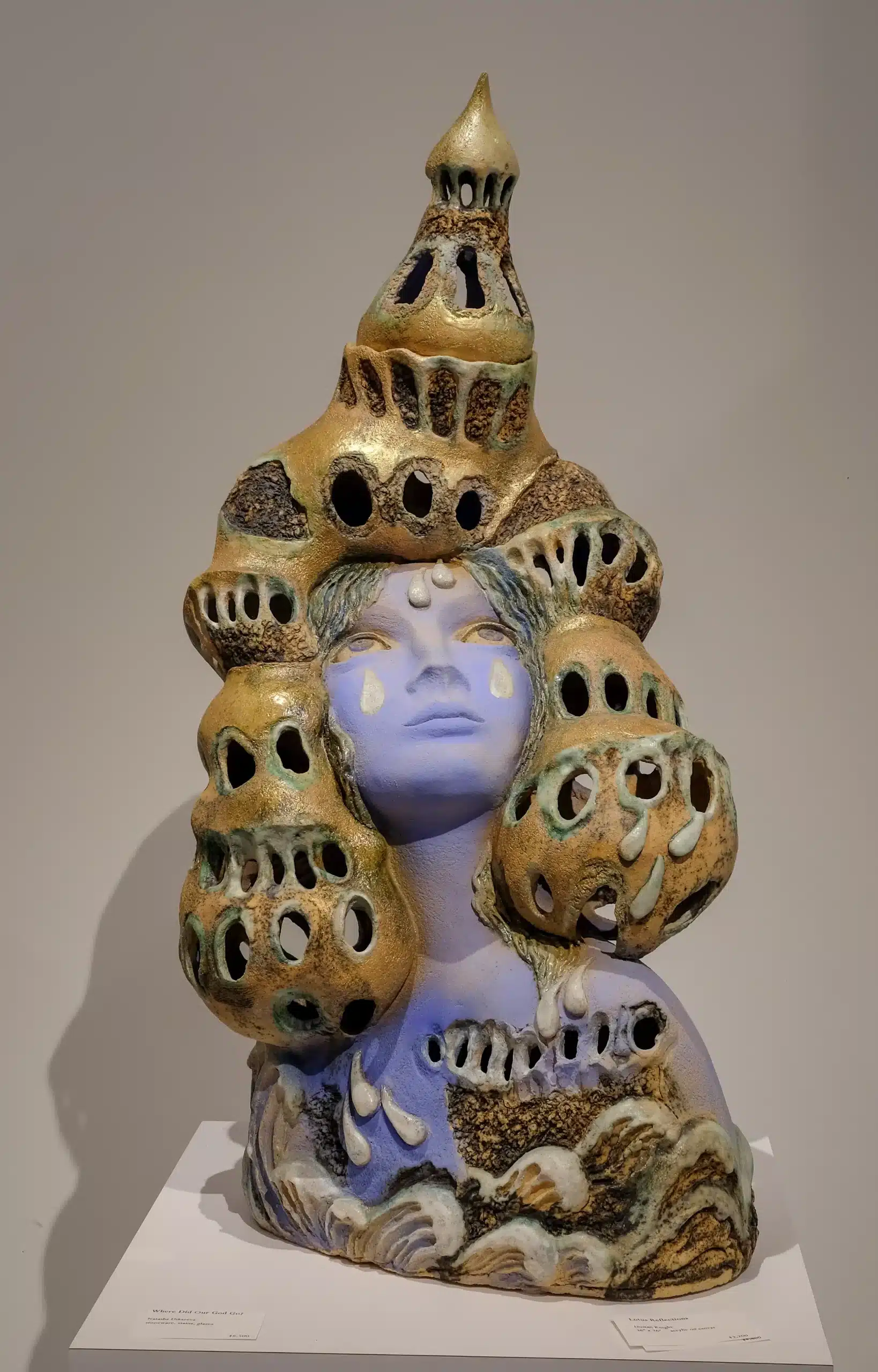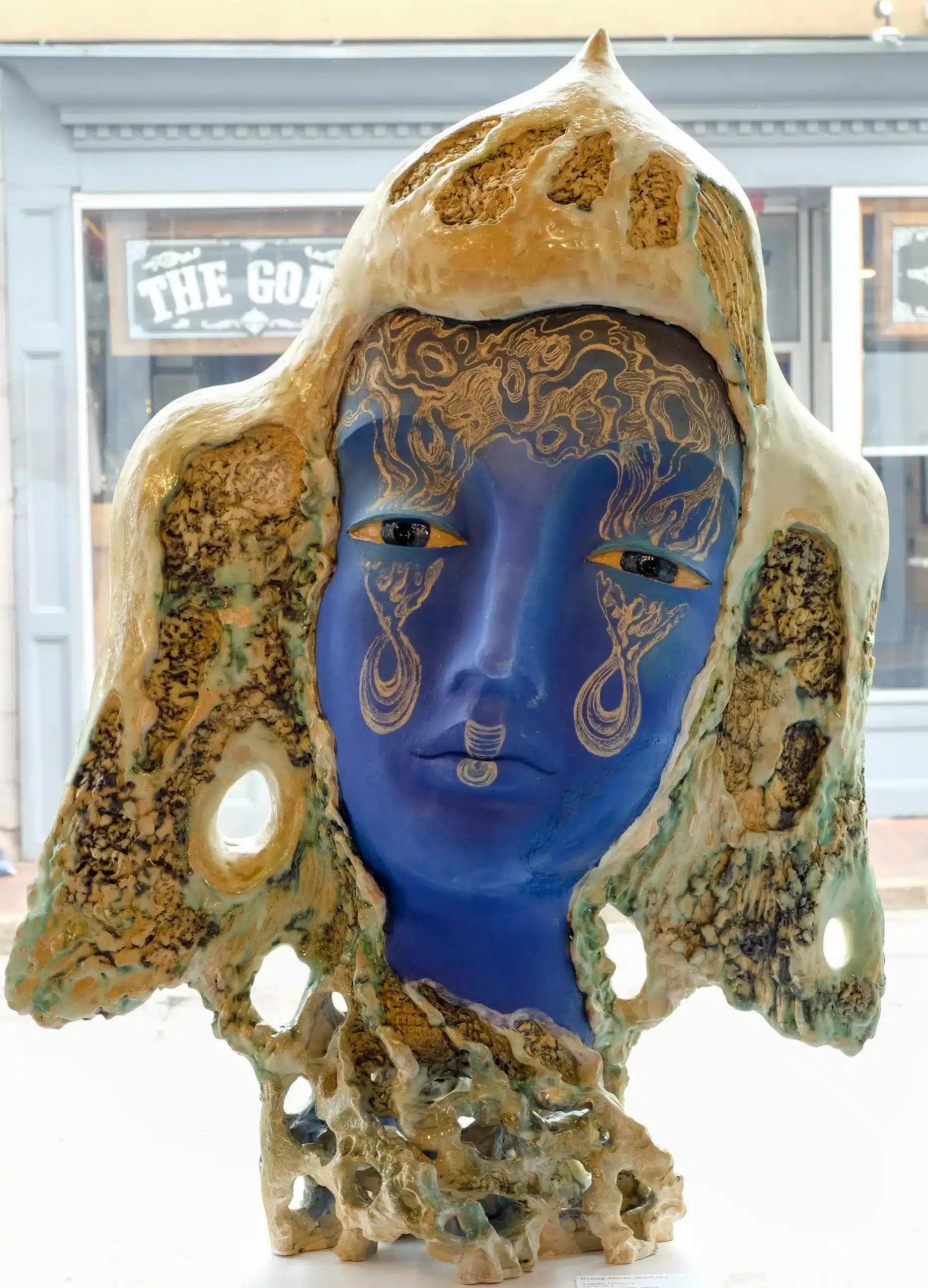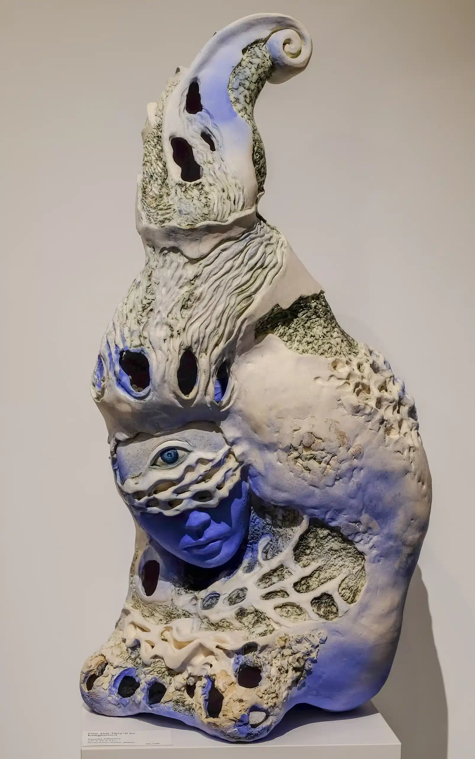 My latest work delves into the depths of our shared human struggle. Within the somber hues of blue, my sculptures stand as silent witnesses to our world’s discord and destruction. Like guardians of a shattered realm, they remain standing among the wreckage, punctured with holes that speak of both vulnerability and resilience. Within their melancholy, there is a quiet whisper of hope – a call to embrace empathy, love, and light. These sculptures reflect our endurance in the face of adversity. They remind us that even in our darkest hours, there exists a path toward enlightenment. As we navigate through the wreckage of war and loss, we can seek to illuminate our world with compassion and understanding. For it is through the triumph of light that we shall conquer the shadows of evil.