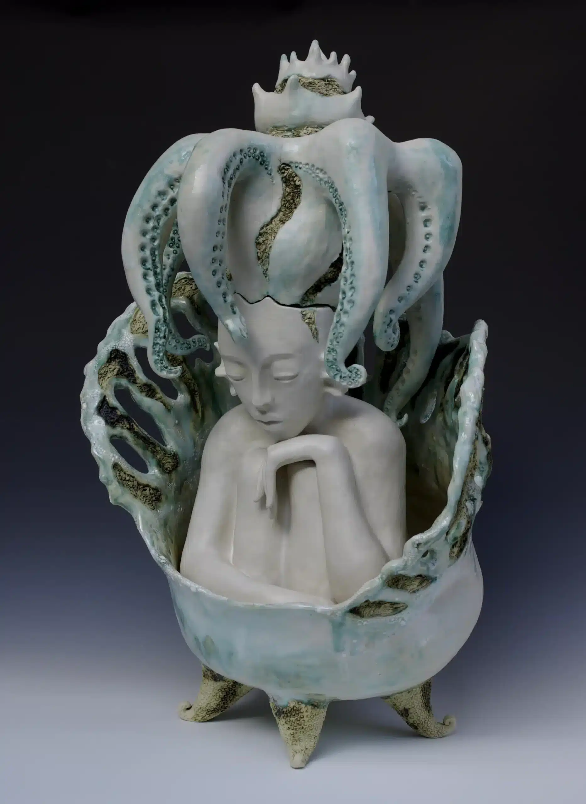 17″ x 13″ x 19″ stoneware, stains, glazes, china painting