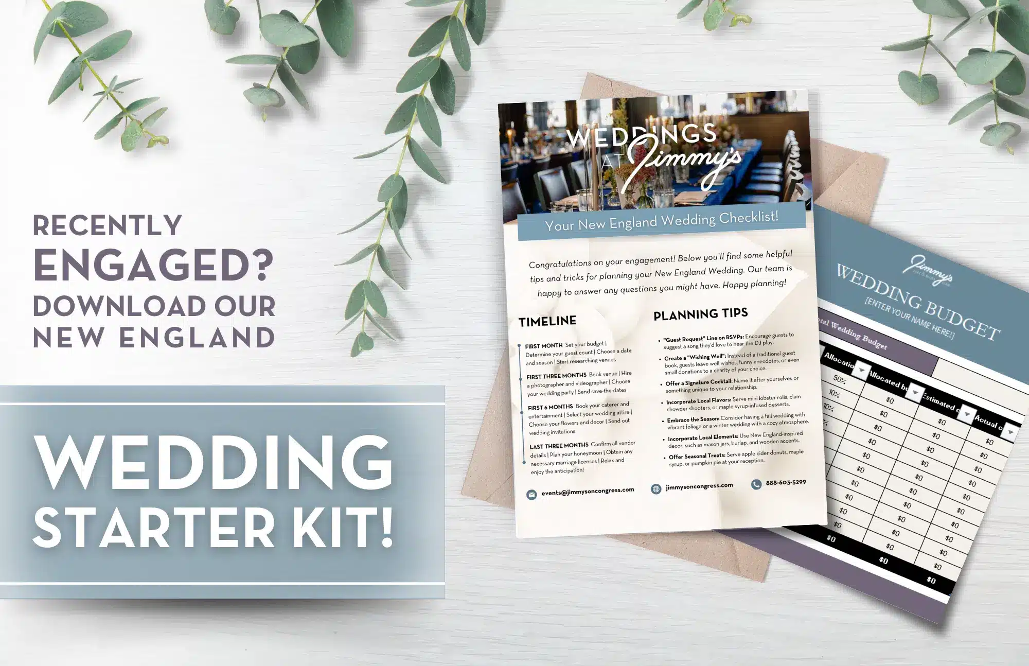 Planning a wedding is a momentous journey, and having the right tools from the start makes all the difference. Our New England Wedding Starter Kit is designed to streamline the process, offering a comprehensive planning timeline, expert tips, and a budgeting worksheet to keep everything on track. Whether you’re envisioning a coastal celebration, a historic venue, or an intimate gathering, this essential guide will help you navigate each step with ease. Download your kit today and begin crafting a wedding that’s both seamless and unforgettable.